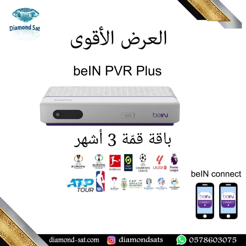 يعتبر جهاز الاستقبال beIN PVR Plus من أحدث الأجهزة التي توفر محتوى القنوات المشفّرة الخاصة بـbeIN من خلال نظام فائق الأمان وتصميم عصري يتم إنتاجه بواسطة إحدى أكبر الشركات العالمية في صناعة أجهزة الاستقبال المشفّرة. يتيح لكم هذا الجهاز التسجيل، الإيقاف أو الرجوع إلى الوراء لمشاهدة الفيديو المفضل لديكم في أي وقت. ويحتوي الجهاز على نظام واي فاي Wi-Fi ليتصل بالإنترنت ويقدم المزيد من الخدمات للمشترك مثل خدمة الفيديو حسب الطلب VOD وخدمة الـ Catch-up، كما يتيح مشاهدة أكثر من 2500 فيديو من أحدث الأفلام والمسلسلات والأحداث الرياضية العالمية. كل ما عليكم القيام به هو إضافة القرص الصلب الخارجي وتوصيل الجهاز إلى الإنترنت.